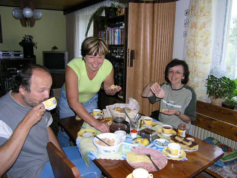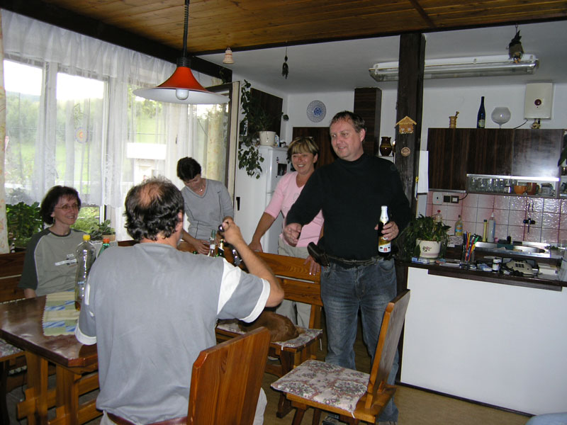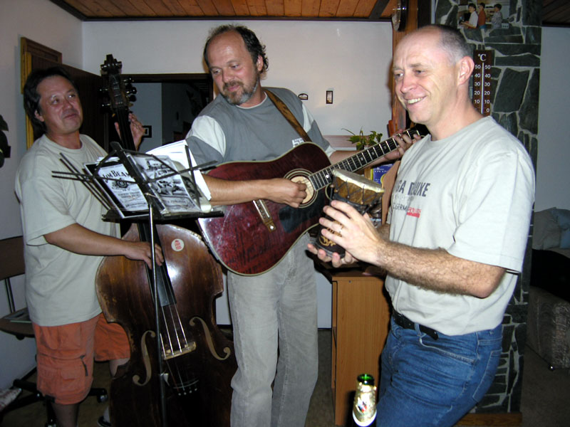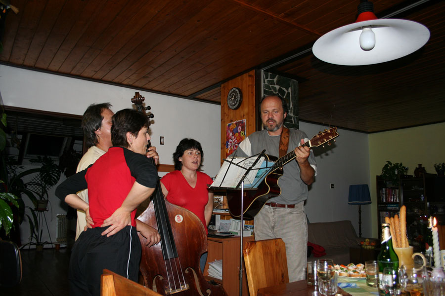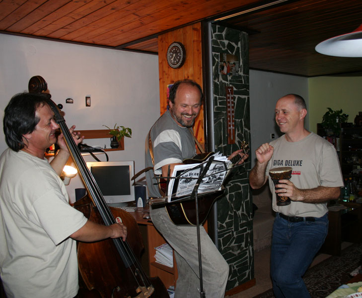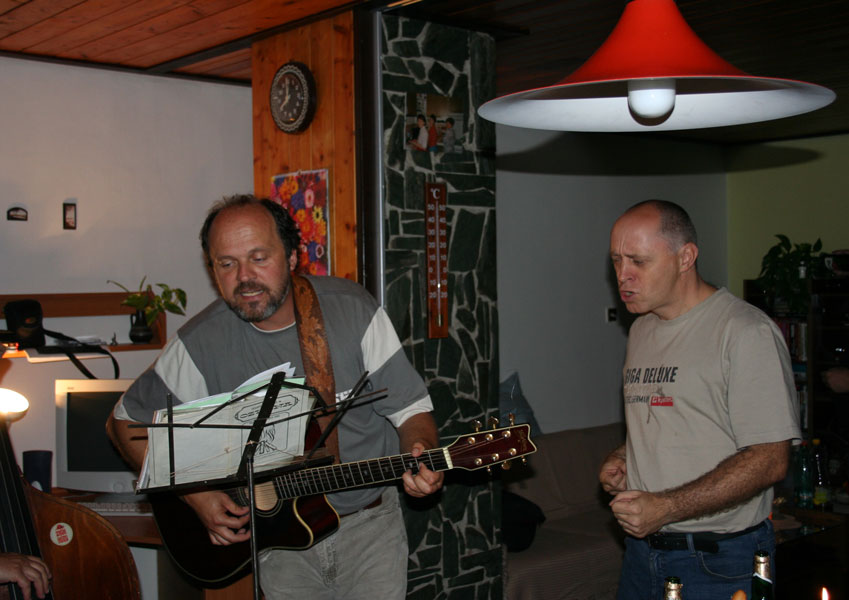 Promiňte tu prodlevu v novinkách, ale znáte to ... výmluva na nedostatek času (oprávněná), trochu lenosti (neodpustitelné). A né, že by nebylo tedy o čem psát a co dokumentovat. To vůbec ne. Prostě prodleva ... Ale tuto událost, tohle kamarádské setkání v Záchlumí z konce letošního léta, to už jsem zkrátka nemohl nechat bez povšimnutí. Ale že jsme si to všichni užili, že ? Muzika, zpívání, klábosení a plný pytel smíchu. Šťastně strávený čas s přáteli nejbližšími. Myslím, že asi tak by mohlo fungovat perpetum mobile. Všichni předávají energii všem a výsledkem je, že nikomu nechybí, ale naopak přebývá. Tak to je o nás, o všech a tak to "ma byť." Chceme Vám ještě jednou Všem moc a moc poděkovat za pohodové chvíle s Vámi se všemi a speciální dík Křeňatům za pohostinnost. Opravdu jsme si to užili a těšíme se někdy příště. Mirek & Hana